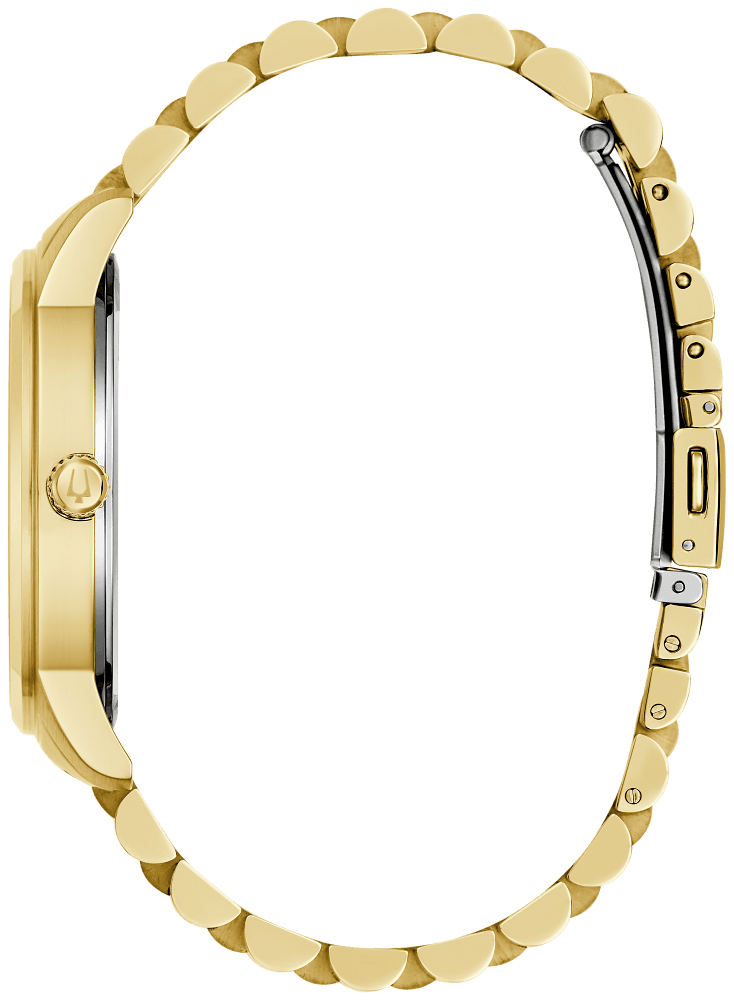 Timeless design, wear-with-everything style. This timepiece features a gold-tone stainless steel case, bracelet and dial with a calendar window at the 3 o’clock position and bold and easy-to-read numerals.