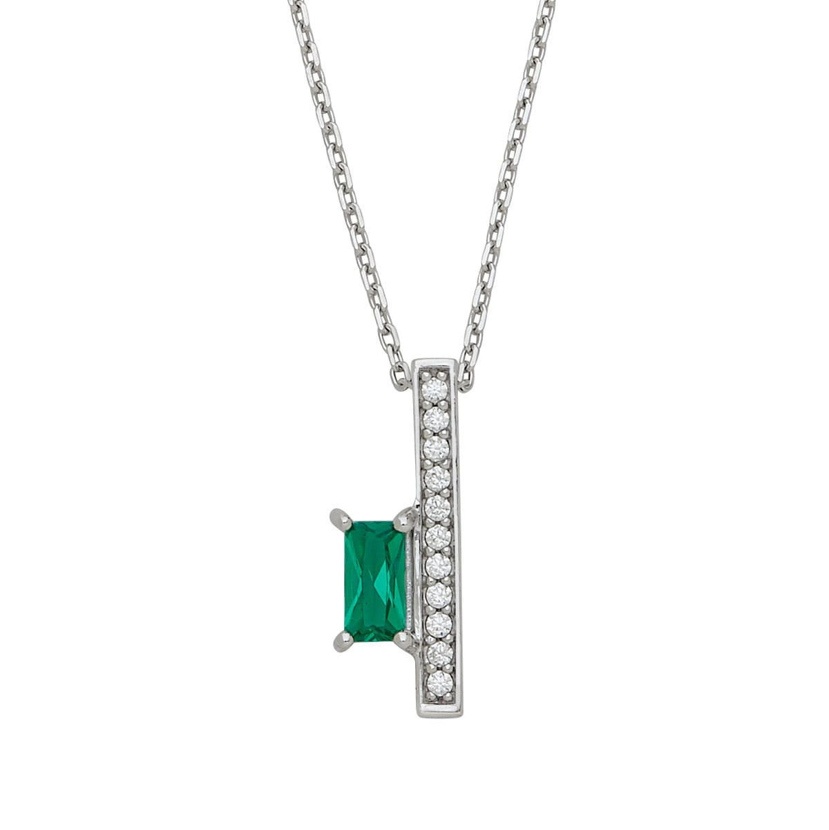.925 Silver Linear White CZ’s Bar w/ Emerald Shape Green CZ Sidekick Pendant