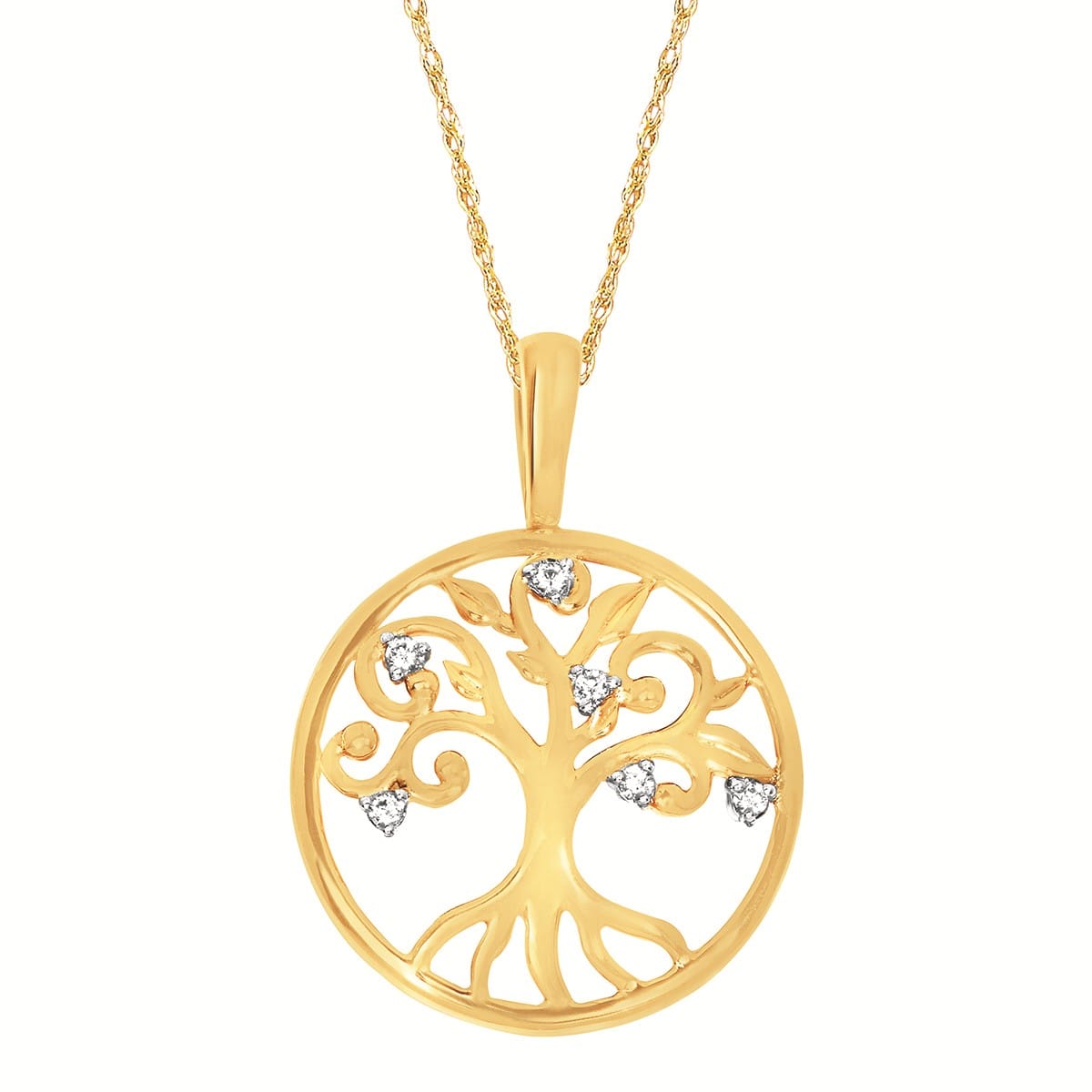 Symbolic and beautifully detailed, this Tree of Life pendant represents growth, strength, and connection. Crafted in radiant yellow gold, the intricate tree design features gracefully branching limbs and flowing roots, capturing the essence of life’s continuous journey. 0.05cttw